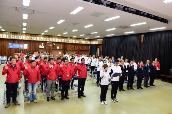 여주시청 대회의실에서 원경의 여주시장을 비롯 시의회 의장,도의원 시의회의원과 출전선수 50여명이 참석한 가운데 결단식을 가졌다.