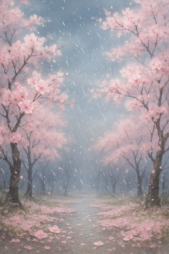 흩날리는 꽃비 아래서