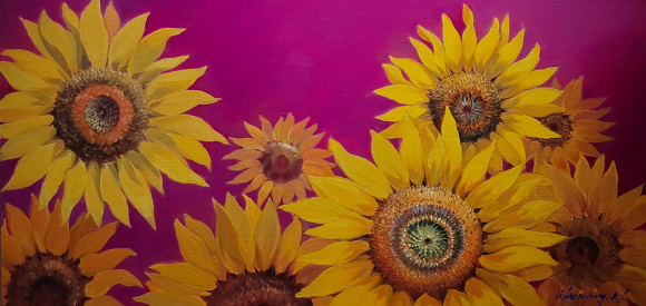 모란은 옛 부터 부귀영화, 번영, 행복, 평화 등의 좋은 의미가 담겨있어 우리 전통 미술 민화 또는 문인화에 많이 등장하는 소재의 꽃으로 작가는 섬세하고 깊은 터치감이 느껴지는 유화 작품을 가지고 기쁨의 뜻을 더욱 부각시켜 인상적이다. 만개한 모란의 형상은 보는 사람의 감정에 따라 웃는 모습일 수 있고, 수즙은 사람의 표정처럼 점잖아 보이기도 한다. 어렸을 적 집 마당에 핀 모란꽃 군락의 아름다웠던 행복한 풍경 기억이 시간이 흐르면서 아련하게 떠오르는 향수로 남아 자연스럽게 작품의 주요 소재가 되었다. 화려함 보다 절제미가 느껴지고 은은하게 꽃의 매력이 다가와 지루하지 않는 모란은 애착을 가지고 이미지로 남겼으며, 모란의 특징을 살리기 위해 여러 번 반복해서 색을 쌓아 올리듯 제작하여 생동감이 있다. 모란꽃의 개화 시간은 매우 짧다. 그래서 더욱 애틋하고 고귀하여 아름다운 최고의 시간을 오래도록 붙잡고 싶은 마음을 작품으로 만들어 간직하고 싶었다. 그림을 바라보는 시간에 따라 얻어지는 행복감을 오래 느끼고 싶은 심성의 표현 작업이 모란 작가로 알려졌으며, 창작의 시간까지 즐기는 독창적 예술세계를 펼치고 있다. |  | | | ⓒ 동부중앙신문 | |