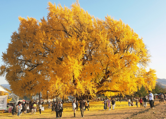 |  | | | ↑↑ (황금빛으로 물든 은행나무를 둘러싸고 열광하는 사람들) | | ⓒ 동부중앙신문 | |
