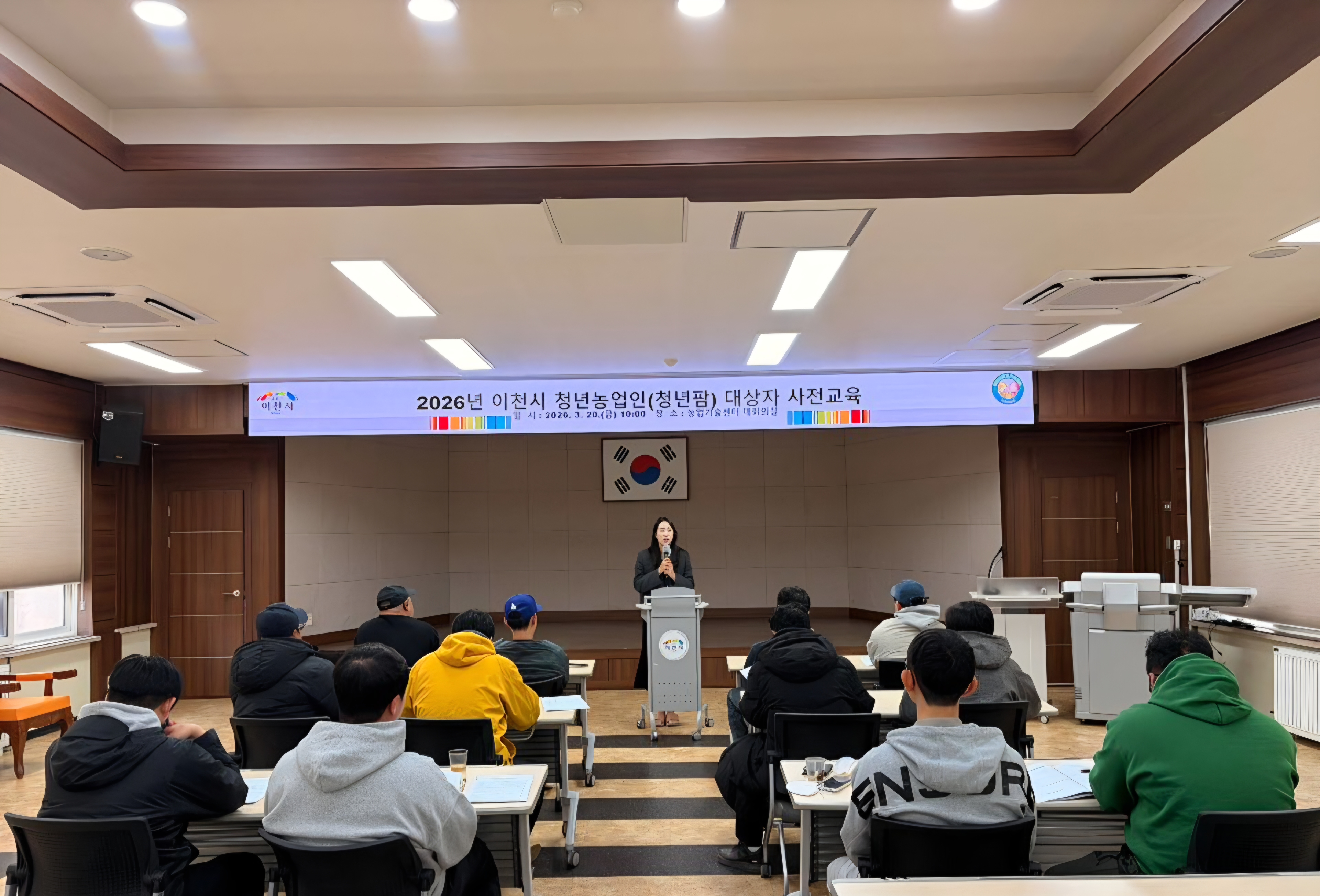 이천시(시장 김경희)는 20일 농업기술센터 대회의실에서 2026년 이천시 청년농업인(청년팜) 선정자를 대상으로 사전교육를 개최했다.