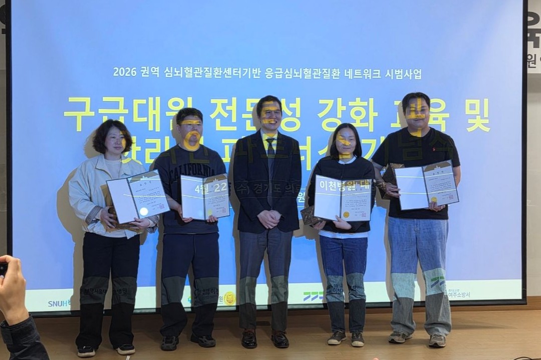 여주소방서(서장 김영복)는 22일 ‘응급심뇌혈관질환 핫라인 사업’ 유공자와 4월 우수·모범공무원, 대표소방관에 대한 표창 수여식을 개최했다. 이날 유공 표창은 분당서울대학교병원이 추진하는 응급심뇌혈관질환 네트워크 사업에 적극 참여해 환자 소생과 예후 향상에 기여한 구급대원들에게 수여됐다. |  | | | ↑↑ 심뇌혈관 핫라인 유공 사진(소방위 김현숙) | | ⓒ 동부중앙신문 | |