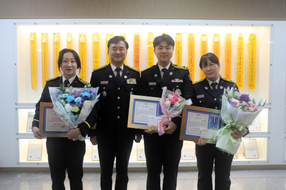 수상자는 ▲소방위 김현숙 ▲소방장 장광현 ▲소방교 장문용 ▲소방사 고건희로, 이들은 핫라인 시스템을 활용해 병원과 신속히 연계하고 치료 준비 시간을 단축하는 등 골든타임 확보에 기여한 공로를 인정받았다. 해당 사업은 분당서울대학교병원을 중심으로 여러 의료기관이 참여해 중증 심뇌혈관 환자를 신속히 이송·치료하는 협력 체계다. |  | | | ↑↑ 모범공무원 단체사진 | | ⓒ 동부중앙신문 | |
